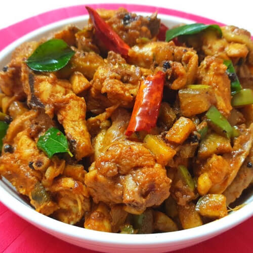Chicken cooked with raw plantain in a spicy, rustic Kerala-style masala