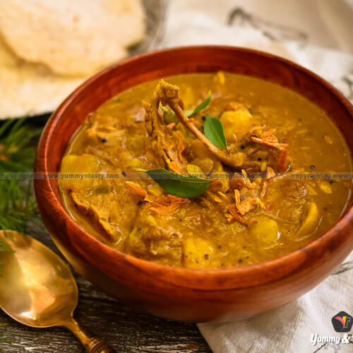 Duck simmered in a mildly spiced coconut milk gravy with Kerala flavors