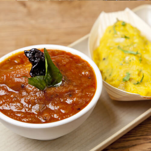 Tapioca served with tangy fish curry, rich in Kerala spices